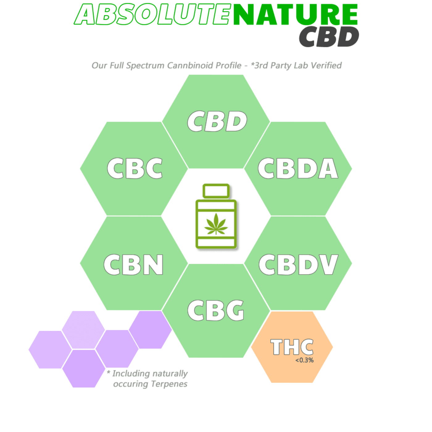 We take absolute pride in producing our 100% natural 500mg of beautifully created Full Spectrum CBD oil. Our top-quality full spectrum CBD oil contain not only a high amounts of CBD, but other naturally-occurring cannabinoids and terpenes from the cannabis/hemp plant, providing all the benefits without the high.